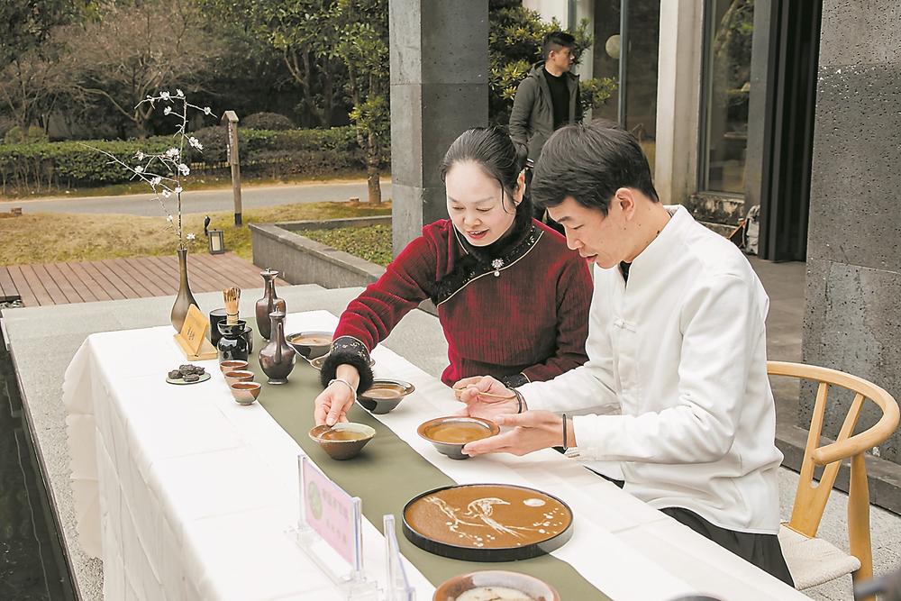 活動現(xiàn)場還授予武夷星茶業(yè)有限公司、福蓮茶莊園“南平市閩臺青年茶文化交流基地”牌匾。閩臺茶人互動展示非遺技藝茶百戲(如圖)。 臺青、廈門啟達臺享公司總經(jīng)理范姜鋒表示,未來希望通過新穎的茶事活動,邀請更多臺灣青年到南平,真正融入武夷山茶產(chǎn)業(yè)發(fā)展,促進兩岸交流合作。 其間,臺灣青年還走進燕子窠生態(tài)茶園,感受福建自然生態(tài)之美;參觀武夷山朱子故里海峽兩岸交流基地、政和縣閩臺青年融合數(shù)字文化IP綜合館等,為兩岸文化交流、融合發(fā)展建言獻策。 |