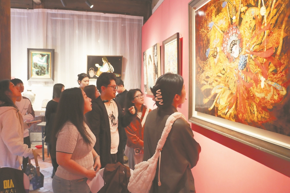 觀眾在沈紹安漆藝博物館觀看“不被定義的她——女性肖像主題漆畫展”。(受訪者供圖) “陶瓷與漆藝,二者本來材質有別、工藝不同,但在‘順物自然、因材賦形’的審美邏輯中收獲異曲同工,映射出中華非遺技藝共通的文化氣質與藝術追求?!鄙蚪B安漆藝博物館館長施麗玲表示,希望通過這樣的跨媒介、跨地域、跨時代的文化協奏曲,吸引更多年輕人走進博物館、美術館,走近非遺。 這場展覽的成功舉辦,正是古厝活化利用的生動注腳。 “沈紹安漆藝博物館的所在地是朱紫坊芙蓉園,這座國家級重點文物保護單位的歷史可追溯至南宋,興盛于明清時期,曾為明朝首輔葉向高的府邸?!笔惲峤榻B,如今芙蓉園與漆藝相融,已成為集收藏、展覽、研究、科普、教育于一體的公共文化空間,更是福州的“城市會客廳”。 “我們將多元業(yè)態(tài)融入文化空間,通過舉辦主題展覽、開展研學沙龍、面向社會公眾開展豐富多彩的‘漆藝+’活動,傳播福州漆藝文化;引入AI、VR技術,打造全新觀展體驗,不僅使傳統(tǒng)漆藝以全新的面貌展示給公眾,還擴展了藝術的觸及范圍和深度,每年吸引游客逾10萬人次?!笔惲嵴f。 距沈紹安漆藝博物館20公里開外,有一座同樣利用古厝老宅興辦的“百佳公共文化空間”——十三厝當代藝術館。