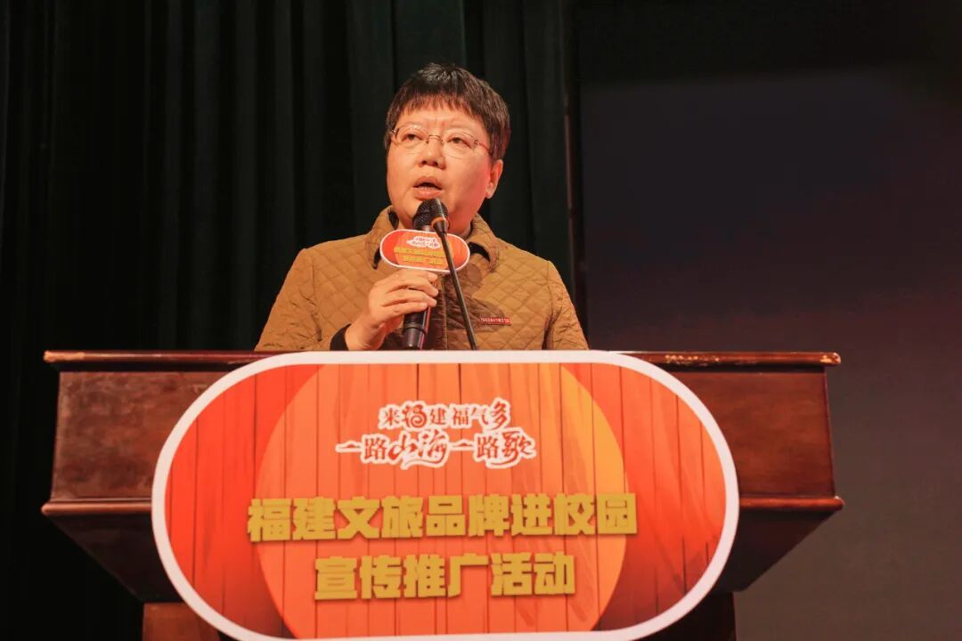 福建華南女子職業(yè)學(xué)院校長(zhǎng)任建紅致辭 會(huì)上,福建華南女子職業(yè)學(xué)院校長(zhǎng)任建紅致歡迎辭。她表示,學(xué)生們是這片土地文化傳承與發(fā)展的希望之星,通過這次活動(dòng),希望學(xué)生們可以更加深入地認(rèn)識(shí)福建的文化、自然和美食,增強(qiáng)對(duì)家鄉(xiāng)的熱愛和自豪感,為福建的發(fā)展貢獻(xiàn)自己的力量。同時(shí),希望學(xué)院師生能逐步培育文化自信,激發(fā)創(chuàng)新思維與實(shí)踐能力,多走出去,領(lǐng)略清新福建的魅力,帶回屬于華南特色的文旅故事。