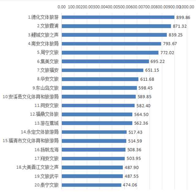 福建省各縣(市、區(qū))文化和旅游政務(wù)微信公眾號10月傳播力指數(shù)TOP20傳播數(shù)據(jù) |