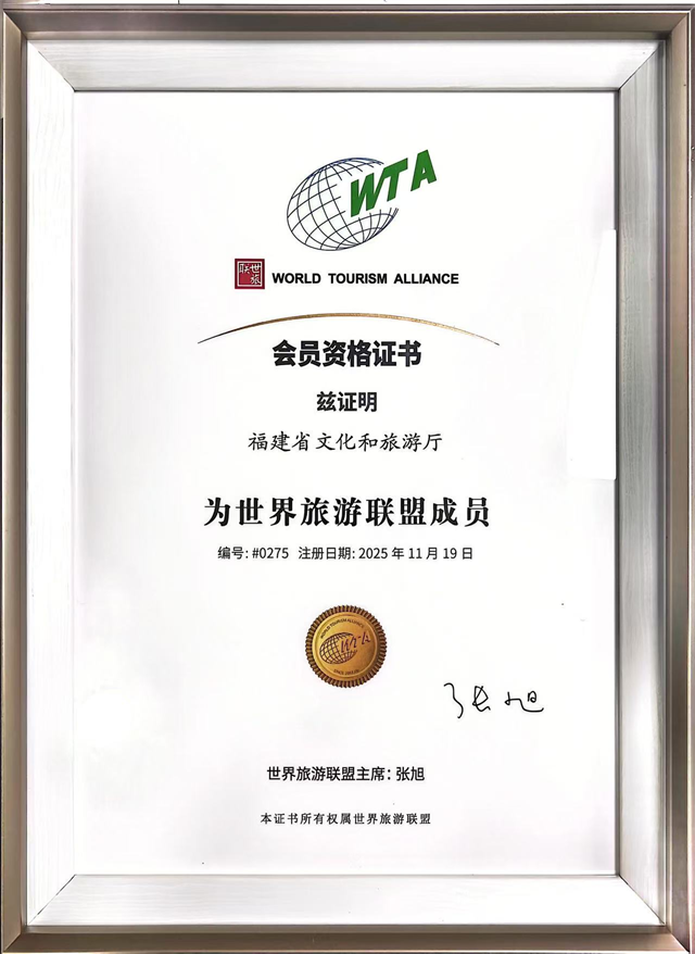 11月19日,世界旅游聯(lián)盟2025年年會在浙江省杭州市召開。本次年會通報了第二屆理事會第四次會議情況、2025年度聯(lián)盟工作成果及2026年度重點(diǎn)工作計劃,并為新會員頒發(fā)證書。福建省文化和旅游廳作為新會員之一,正式加入世界旅游聯(lián)盟,標(biāo)志著福建文旅事業(yè)邁向國際化合作新階段。
