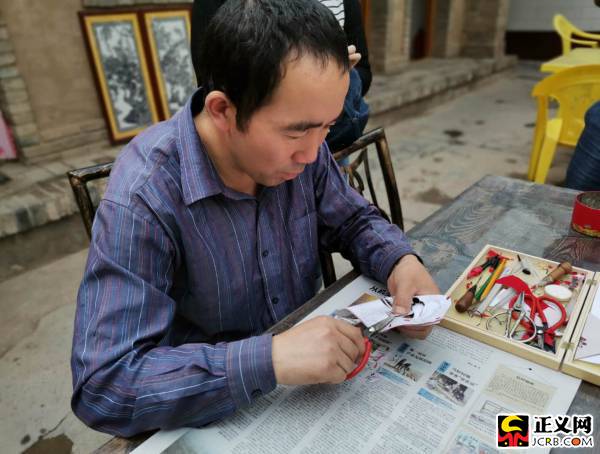剪紙文化手藝人楊國(guó)權(quán)展示剪紙技術(shù)。崔曉麗 攝 下午四時(shí),記者走入老巷子的楊國(guó)權(quán)剪紙藝術(shù)工作室,隨處看見令人驚嘆的剪紙藝術(shù)作品,比如歷時(shí)三年完成的清明上河圖?!拔覐男【拖矚g跟著姥姥學(xué)剪紙,村里發(fā)展旅游產(chǎn)業(yè)之后,我就琢磨著如何將手藝變成致富的方式?!睏顕?guó)權(quán)說(shuō),縣政府對(duì)于他們憑手藝創(chuàng)收,為旅游景區(qū)提供觀賞點(diǎn)的行為積極鼓勵(lì),“工作室的桌子柜臺(tái)等都是政府給配置的,第一年創(chuàng)辦工作室,政府還給了鼓勵(lì)資金?!彼f(shuō),現(xiàn)在依靠剪紙的手藝,每年能收入五六萬(wàn)元,同時(shí)家里還提供農(nóng)家樂(lè)的午餐,一年下來(lái)有不少結(jié)余,家里供養(yǎng)兩個(gè)大學(xué)生不成問(wèn)題。 楊國(guó)權(quán)的情況只是老巷子脫貧攻堅(jiān)的一個(gè)縮影。據(jù)悉,隆騰公司為探索精細(xì)化發(fā)展模式,結(jié)合老巷子豐富的旅游資源,以美麗鄉(xiāng)村為載體,實(shí)行“旅游+文化”發(fā)展模式,引進(jìn)隆德縣絲路翰墨影視文化傳媒有限公司,成立老巷子文化大院,定期舉辦文化展演;與龜山隆德書院加強(qiáng)合作,設(shè)置旅游精品線路,拓寬旅游發(fā)展之路,提高旅游發(fā)展效益,創(chuàng)增居民收入。