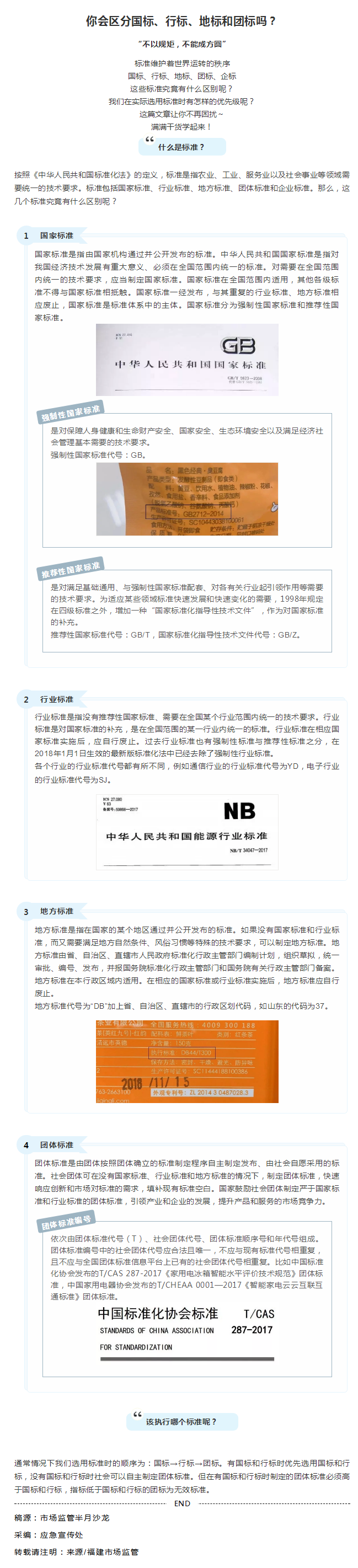 如何區(qū)分國家標(biāo)準(zhǔn)、行業(yè)標(biāo)準(zhǔn)、地方標(biāo)準(zhǔn)和團體標(biāo)準(zhǔn)