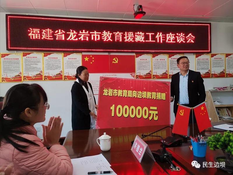 福建第九批援藏隊 供圖 會上,王莉武在聽取邊壩教育概況和教育援藏工作情況匯報后,代表龍巖市教育局向邊壩縣教育局捐贈10萬元的援助資金,在交流發(fā)言中,她對邊壩縣委、縣政府高度重視教育事業(yè)發(fā)展的做法和經(jīng)驗給予高度贊賞,對邊壩縣各部門長期以來關(guān)心關(guān)愛援藏教師、積極搭建教育援助平臺表示衷心的感謝,對教育援藏工作取得的成效給予充分肯定,勉勵援藏教師繼續(xù)當好兩地教育事業(yè)發(fā)展溝通交流的橋梁,在加強民族團結(jié)、教研教改、邊壩老師的培訓(xùn)三個方面繼續(xù)用心,深化、提升課堂效益、提高教育質(zhì)量等方面加大力度,拓展思路,突出重點,用心用情做好教育援藏工作,龍巖市教育局將調(diào)動優(yōu)質(zhì)資源配合推動邊壩教育又快又好發(fā)展。