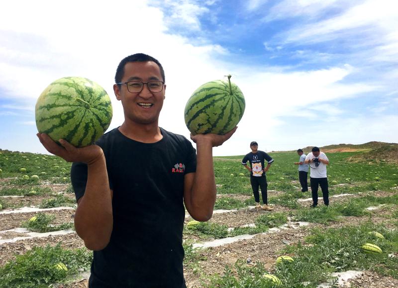圖為寧夏中衛(wèi)市的一位瓜農(nóng)知道記者是來自福建“親戚”,立即從瓜地上摘取新鮮的硒砂瓜,款待來自遠(yuǎn)方的親人?!爸行l(wèi)硒砂瓜”產(chǎn)自寧夏中衛(wèi)市,有“石頭縫里長出來的西瓜”,被認(rèn)為寧夏最好的西瓜。借助廈門見福連鎖管理有限公司,現(xiàn)在全國范圍內(nèi)的消費(fèi)者都可以通過見福線上平臺(tái)或線下門店訂購“中衛(wèi)硒砂瓜”。 東南網(wǎng)記者 顏財(cái)斌 攝