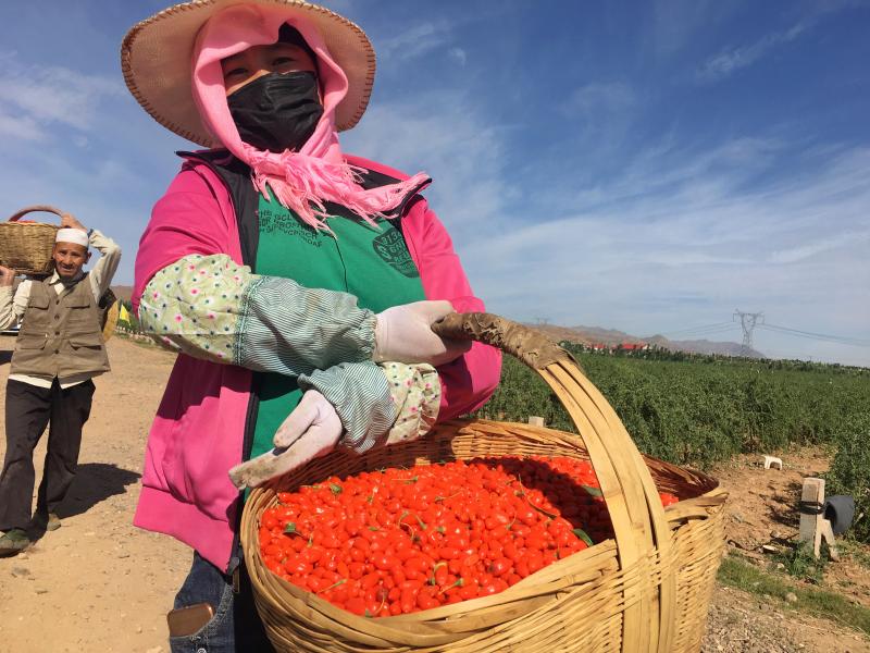圖為在寧夏同德村的枸杞莊園中,當(dāng)?shù)剞r(nóng)民正在采摘枸杞。據(jù)了解,寧夏同德村位于寧夏中部干旱核心區(qū),屬于溫帶大陸性氣候,日照充足,晝夜溫差大,適宜種植枸杞這種耐旱植物。在閩寧協(xié)作的基礎(chǔ)上,當(dāng)?shù)卣M(jìn)一步完善了網(wǎng)絡(luò)銷售平臺(tái),助力當(dāng)?shù)剞r(nóng)產(chǎn)品銷售。 東南網(wǎng)記者 顏財(cái)斌 攝