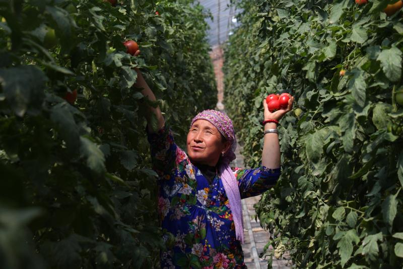 圖為在寧夏原州區(qū)的萬畝蔬菜大棚里,農(nóng)戶們正在采摘成熟的西紅柿。 東南網(wǎng)記者 顏財(cái)斌 攝