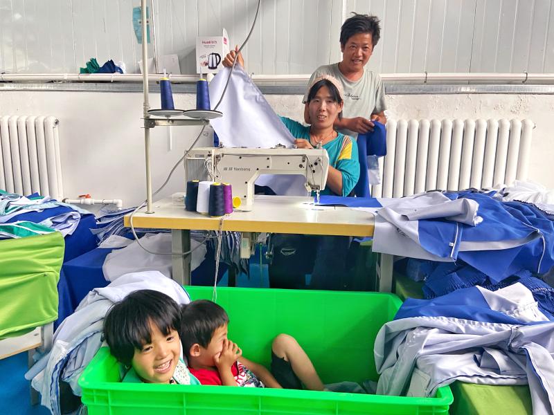 圖為在寧夏固原市福馬扶貧車間工作的馬志梅夫婦和他們的兩個(gè)孩子。目前,馬志梅夫婦實(shí)現(xiàn)了家門口就業(yè)和照顧家庭“雙兼顧”的利好。2018年,占地面積150畝的頭營鎮(zhèn)福馬村建成,這是寧夏“十三五”易地扶貧搬遷就近安置點(diǎn),頭營鎮(zhèn)坪樂等東部山區(qū)4個(gè)村148戶514人搬遷至此。為了確保移民群眾“搬得出、穩(wěn)得住、逐步能致富”。2018-2020年共投入援寧資金348萬元支持福馬村建設(shè)。東南網(wǎng)記者 顏財(cái)斌 攝