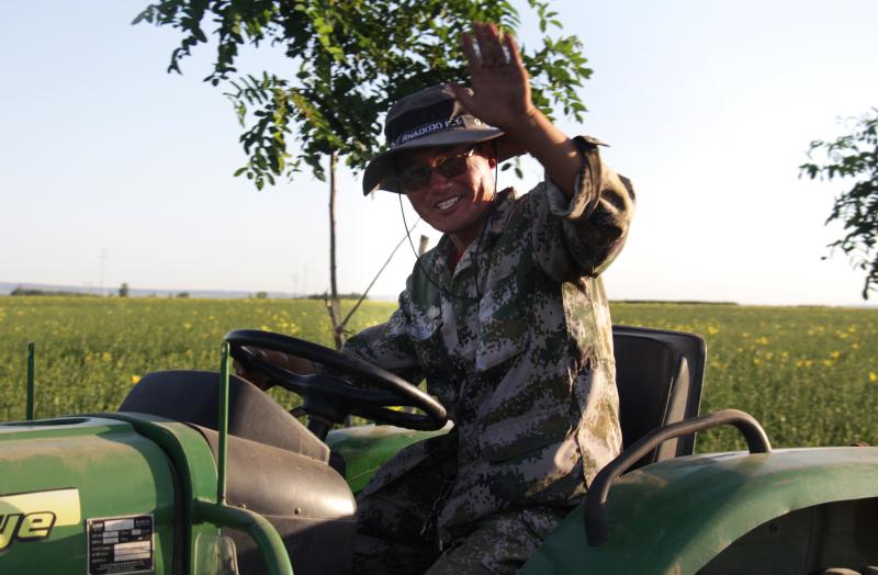 圖為在寧夏紅寺堡的太陽山黃花菜基地內(nèi),一位當(dāng)?shù)剞r(nóng)民聽說記者來自于福建,主動(dòng)揮手問好。 東南網(wǎng)記者 顏財(cái)斌 攝