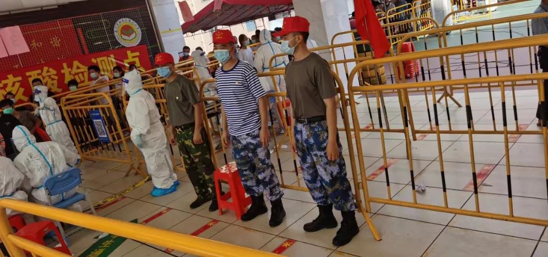 翔安區(qū)民安街道洪溪社區(qū)退役軍人志愿者服務(wù)隊(duì)在社區(qū)核酸檢測現(xiàn)場維持秩序 |