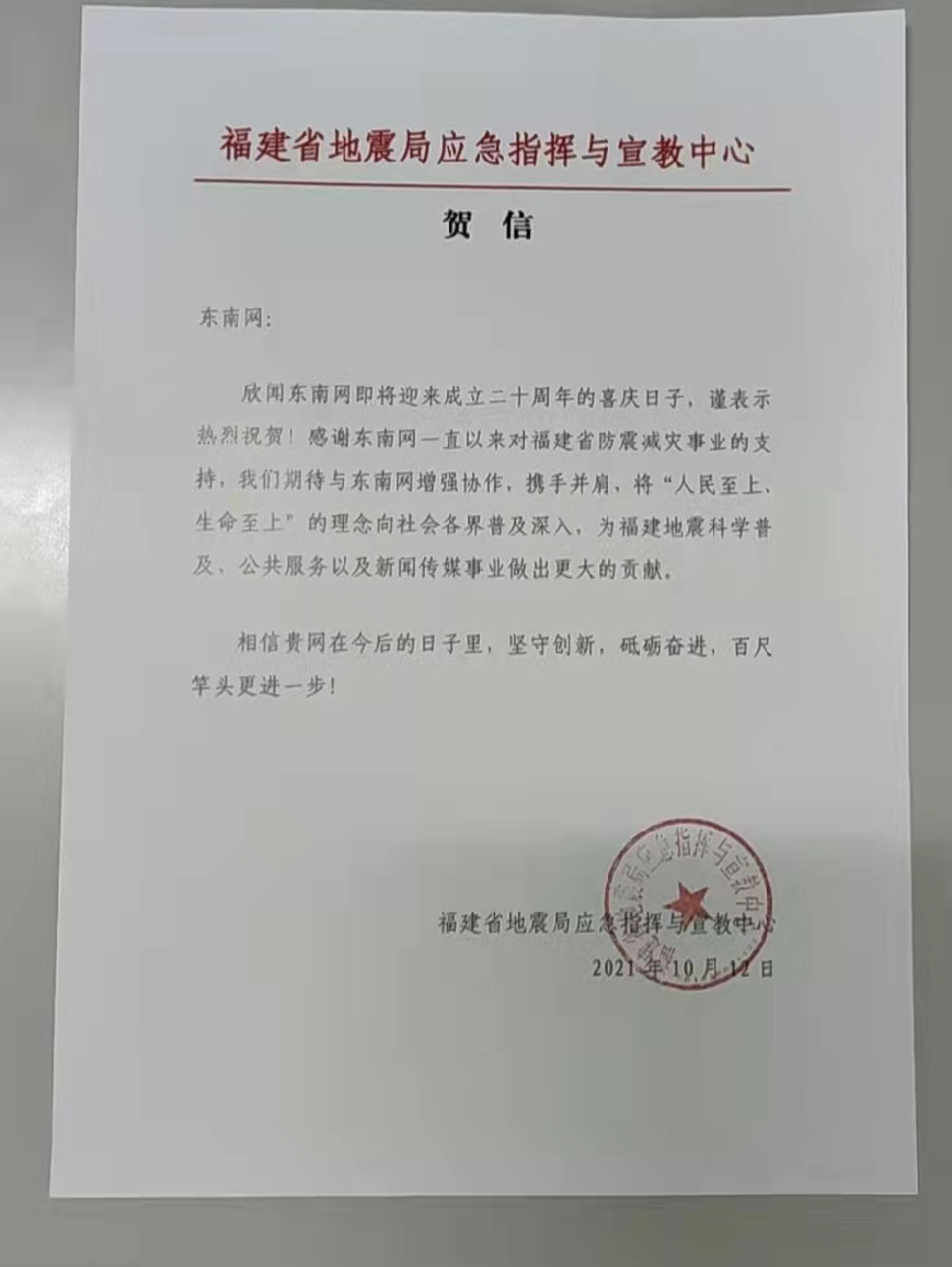 福建省地震局賀信