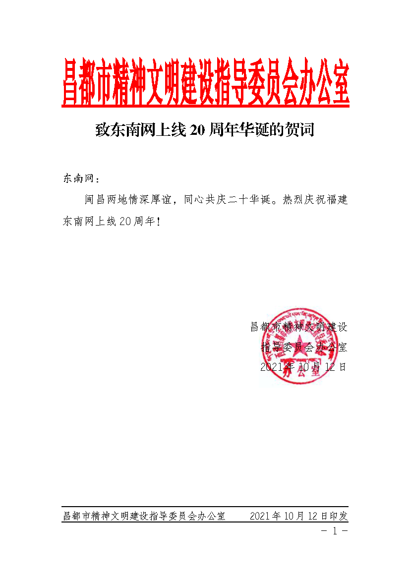昌都市精神文明建設(shè)指導(dǎo)委員會辦公室賀信