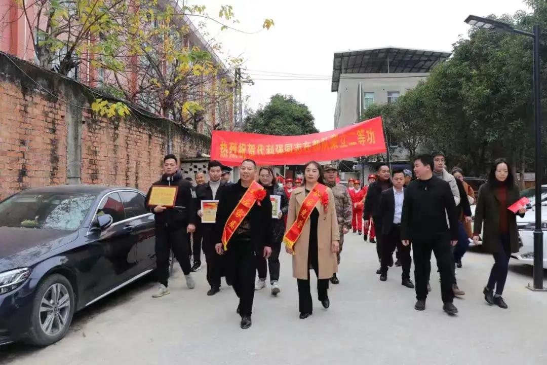 為弘揚“擁軍優(yōu)屬、擁政愛民”的光榮傳統(tǒng),福州市倉山區(qū)退役軍人事務局聯(lián)合區(qū)人武部等單位為轄區(qū)榮立二等功的現(xiàn)役軍人代利強的家屬送去立功喜報和慰問金。 鑼鼓聲中,慰問組一行來到軍人家中,為軍人家屬佩戴綬帶和紅花,送上立功喜報和慰問金,了解軍人在部隊的服役情況和家屬的生活狀況,叮囑當?shù)馗刹恳P心關愛軍人家庭,幫助解決實際困難。 據(jù)了解,代利強于2007年12月入伍,服役以來先后獲得二等功1次、三等功2次、集體三等功1次、先進班1次、優(yōu)秀士官8次、四有優(yōu)秀士官1次、軍事訓練標兵1次、優(yōu)秀文體骨干1次,特別是2020年參加俄羅斯國際軍事比武競賽取得團體第二名的好成績。 祖孫三代老兵送錦旗