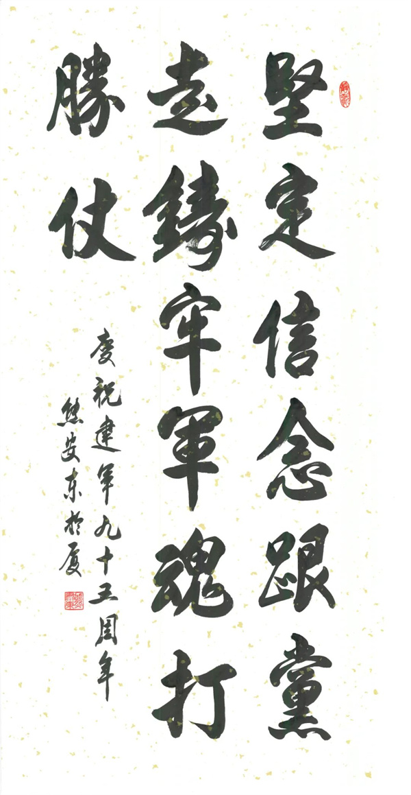 此次書畫展收到了近500幅各類作品,經(jīng)過省書協(xié)和省美協(xié)專家的認真評選,共有150幅書畫作品入展。其中共收到退役軍人及現(xiàn)役軍人書畫作品123幅,32幅入展。此外,軍地有關(guān)領(lǐng)導(dǎo)和福建省愛國擁軍書畫院藝術(shù)家的40幅作品特邀入展。 軍民團結(jié)如一人,試看天下誰能敵!雙擁書畫展已經(jīng)舉辦了三屆,通過書畫藝術(shù)形式,禮贊中國共產(chǎn)黨和中國人民解放軍的光輝歷程和不朽功勛,弘揚中華民族優(yōu)秀傳統(tǒng)文化和紅色基因,展現(xiàn)新時代新福建雙擁工作成就,從而進一步增強廣大軍民砥礪前行的決心和信心,匯聚奮進新征程,建功新時代的磅礴力量。 部分作品展示
