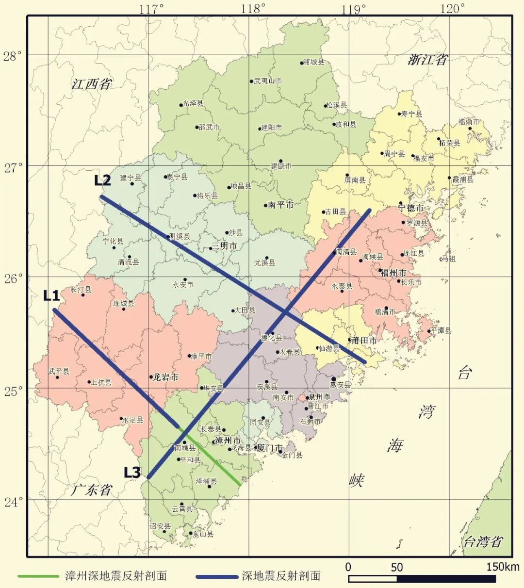 福建省地震局如此一次性、大規(guī)模、系統(tǒng)性地開展區(qū)域性深地震反射探測工作在國內(nèi)尚屬首次。也為區(qū)域地震構(gòu)造環(huán)境探查標(biāo)準(zhǔn)化技術(shù)體系建設(shè)提供了“福建樣板”。 3條探測線精準(zhǔn)獲取數(shù)據(jù) 這次我省啟動的深地震反射探測也是中國地震局系統(tǒng)迄今為止規(guī)模最大的深地震反射探測類項目。為了獲取數(shù)據(jù),科研人員在福建省共布置了3條總長815km的地震測線,涉及7個地級市,25個縣(區(qū)),86個鎮(zhèn)(鄉(xiāng))。