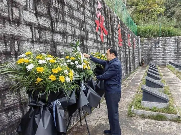 ▲在連江官坂烈士集中安葬區(qū)向烈士敬獻(xiàn)花籃