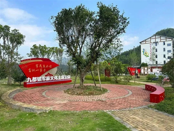 九都軍旅文化館位于九都鎮(zhèn)九仙村九仙館一樓,館內(nèi)基本陳列分為國(guó)防教育知識(shí)、雙擁工作展示區(qū)、九都鎮(zhèn)革命遺跡遺址、九都鎮(zhèn)烈士譜以及參軍入伍軍功榮譽(yù)墻等五個(gè)部分,以形象生動(dòng)的文字和圖畫(huà)再現(xiàn)了土地革命、抗日戰(zhàn)爭(zhēng)、解放戰(zhàn)爭(zhēng)時(shí)期九都鎮(zhèn)犧牲的英烈事跡和近年來(lái)九都鎮(zhèn)黨委政府全面推進(jìn)深化雙擁共建工作的真實(shí)歷程,詮釋了軍政軍民“同呼吸、共命運(yùn)、心連心”的魚(yú)水深情。 館外九仙花苑門樓左側(cè)還有一座軍旅文化主題公園,九都鎮(zhèn)通過(guò)設(shè)置連排立式宣傳展板和銅人雕塑等形式,詳細(xì)展示了鎮(zhèn)域紅色旅游路線、革命故事、旅游景點(diǎn)等內(nèi)容,將雙擁文化與自然環(huán)境融為一體,吸引了眾多市民駐足打卡。