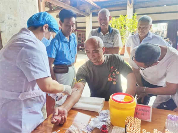 老兵張欽華在抽血化驗檢查點做檢查