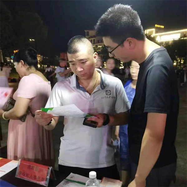 浦城縣丹桂廣場(chǎng)舉辦2023年百日千萬招聘專項(xiàng)行動(dòng)暨大中專畢業(yè)生專場(chǎng)招聘會(huì) “老班長(zhǎng),晚上好!您是過來找工作嗎?有看到比較合適的崗位嗎?”招聘會(huì)現(xiàn)場(chǎng),浦城縣退役軍人事務(wù)局特別設(shè)立政策咨詢專區(qū)和就業(yè)推薦專區(qū),為退役軍人免費(fèi)提供就業(yè)創(chuàng)業(yè)政策咨詢和就業(yè)崗位推薦。本次專項(xiàng)招聘會(huì)共有58家企業(yè)參會(huì),為退役軍人提供就業(yè)崗位千余個(gè),涵蓋銷售、新媒體、互聯(lián)網(wǎng)、安保等多個(gè)行業(yè),有5名退役軍人初步達(dá)成就業(yè)意向。