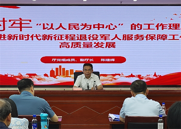 為深入推進(jìn)主題教育開展,7月12日下午,省退役軍人事務(wù)廳黨組成員、副廳長陳建輝圍繞“樹牢‘以人民為中心’的工作理念 推進(jìn)新時(shí)代新征程退役軍人服務(wù)保障工作高質(zhì)量發(fā)展”主題,為廳思想政治和權(quán)益維護(hù)處(政策法規(guī)處)、規(guī)劃財(cái)務(wù)處、軍休管理處、省退役軍人服務(wù)中心全體黨員干部上了一堂主題鮮明的專題黨課。