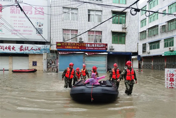 福建省石獅市鄉(xiāng)鎮(zhèn)退役軍人志愿者們清理倒伏樹木 雨急浪高,彰顯本色 面對(duì)滔滔洪水,廣大退役軍人關(guān)鍵時(shí)刻沖得上去、豁得出來,不畏艱險(xiǎn)、迎難而上、勇于沖鋒,充分展示了為民服務(wù)的價(jià)值追求和責(zé)任擔(dān)當(dāng)。 河北省“最美退役軍人”劉喜雙帶領(lǐng)26名退役軍人志愿者,到達(dá)災(zāi)區(qū)當(dāng)天就解救被困群眾120余人。 浙江省諸暨貴興救援隊(duì)投入戰(zhàn)斗3小時(shí)救出被困群眾300余人。 山東省平陰朝陽(yáng)救援中心兩個(gè)半小時(shí)內(nèi)進(jìn)出受災(zāi)村莊5次,救出被困群眾100余人。 河南省70余支退役軍人志愿服務(wù)救援隊(duì)、600余人退役軍人志愿者奮戰(zhàn)在救災(zāi)一線,出動(dòng)沖鋒舟150余艘、水陸兩棲車20余輛,協(xié)助轉(zhuǎn)移群眾2.7萬余人。 ……