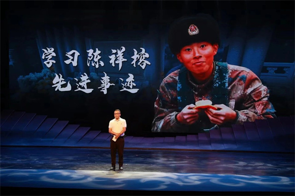 “清澈的愛,只為中國。19歲,原本是最絢爛的年紀(jì),但陳祥榕的生命卻永遠(yuǎn)定格了。”屏南縣屏城初級中學(xué)老師陳臻蘇,用生活的點(diǎn)滴瑣事將其侄子——衛(wèi)國戍邊烈士陳祥榕清澈而勵(lì)志的一生娓娓道來,觸動(dòng)了現(xiàn)場每一位觀眾。