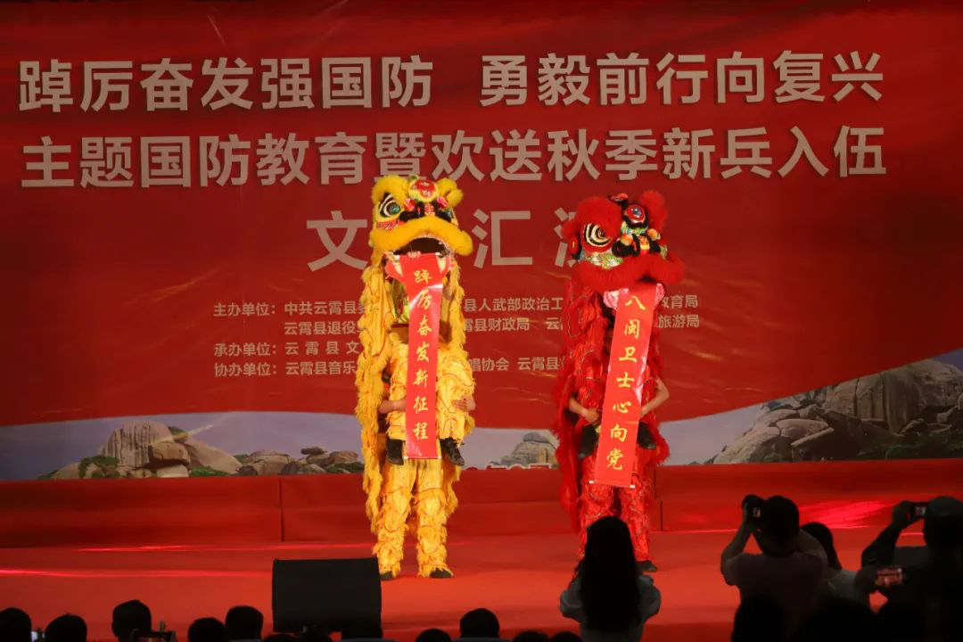 9月16日是第23個(gè)全民國防教育日。云霄縣為即將踏上軍旅的2023年秋季入伍新兵及家長們送上一場(chǎng)精彩紛呈的文藝匯演,以閩南非遺為主的軍旅文藝題材向新兵們展示了云霄人民愛子弟兵的雙擁熱情。 學(xué)非遺、品民俗、悟傳統(tǒng),讓非遺傳承“潮”起來,“非遺”是云霄地方特色文化的展示,云霄箏《山丹丹開花紅艷艷》、云霄剪紙展示、潮劇《一片丹心衛(wèi)國邦》等非遺節(jié)目精彩紛呈,激情澎湃,既弘揚(yáng)了愛國主義旋律,又增強(qiáng)了全民國防觀念,更是讓人耳目一新。臺(tái)下觀眾神采飛揚(yáng)、熱情高漲,掌聲、歡呼聲一浪高出一浪。 與此同時(shí),舞獅表演、武術(shù)表演、閩南語串燒......一個(gè)個(gè)節(jié)目輪番上演,演出在新兵們的大合唱《強(qiáng)軍有我》中落下帷幕。整場(chǎng)演出既有地方特色,又有軍營色彩,既有互動(dòng)交流,又有才藝展示,新兵們?cè)谙硎芊沁z文藝匯演中接受一次深刻的國防教育洗禮,更加堅(jiān)定從軍報(bào)國之志,扎根軍營,爭做新時(shí)代“四有”軍人的理想信念。 洛江區(qū)