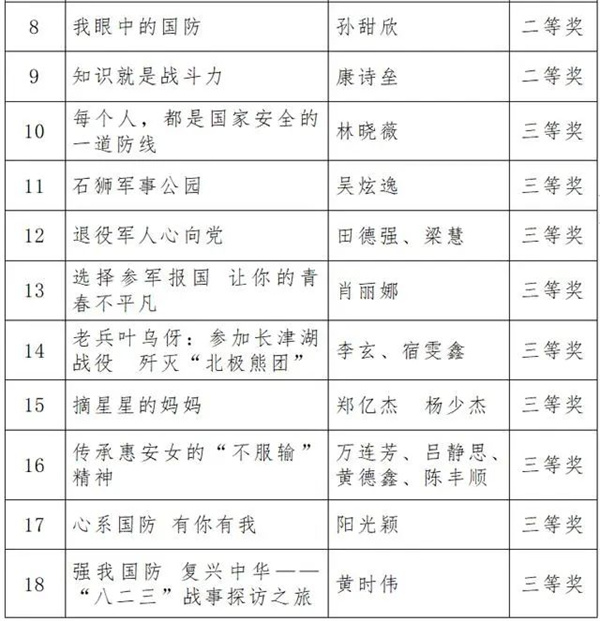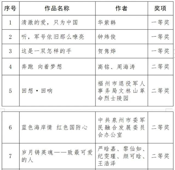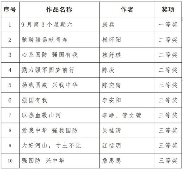 2023年福建省“愛(ài)我國(guó)防”主題短視頻、海報(bào)、攝影作品征集展示活動(dòng)獲獎(jiǎng)作品名單