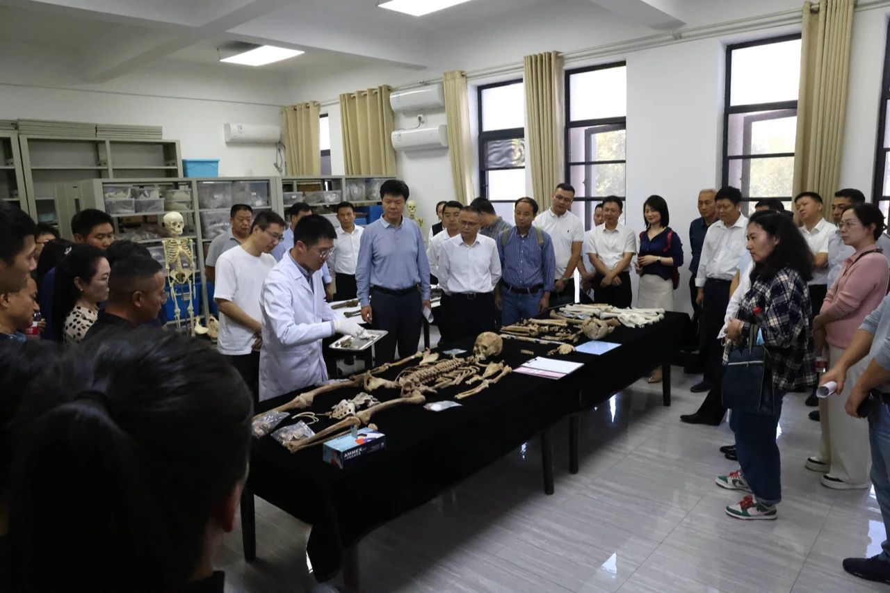 圖為與會人員在武漢大學(xué)人類骨骼考古實(shí)驗(yàn)室觀摩學(xué)習(xí)。 退役軍人事務(wù)部烈士紀(jì)念設(shè)施保護(hù)中心(退役軍人事務(wù)部烈士遺骸搜尋鑒定中心)負(fù)責(zé)同志,湖北省退役軍人事務(wù)廳負(fù)責(zé)同志,相關(guān)?。▍^(qū)、市)退役軍人事務(wù)廳(局)負(fù)責(zé)烈士褒揚(yáng)工作的同志,以及有關(guān)專家共約100人參加會議。 |