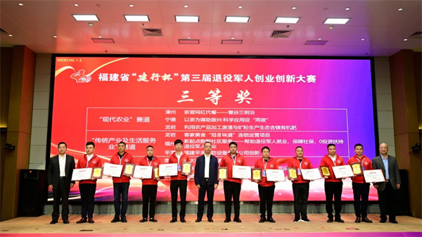 12月2日,由福建省退役軍人事務廳主辦,福建省科學技術廳、人力資源和社會保障廳、農(nóng)業(yè)農(nóng)村廳協(xié)辦,建設銀行福建省分行、福建省退役軍人服務中心承辦的“福建省‘建行杯’第三屆退役軍人創(chuàng)業(yè)創(chuàng)新大賽”在福州舉辦。