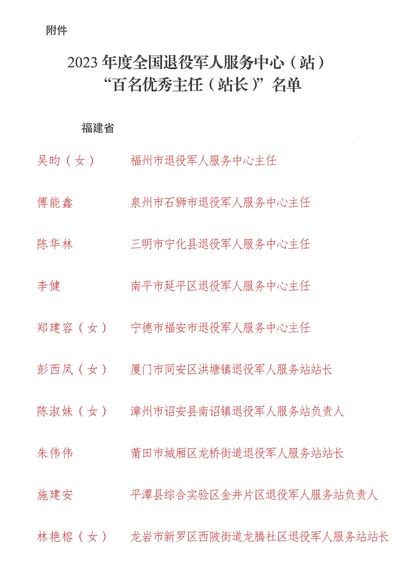 喜訊!我省10人獲評2023年度全國退役軍人服務(wù)中心(站)“百名優(yōu)秀主任(站長)”