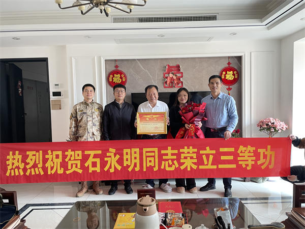 為現(xiàn)役軍人三等功獲得者石永明家屬送喜報(bào) 2月21日,送喜報(bào)小分隊(duì)來到云霄縣云陵鎮(zhèn)渡頭嘉園,為三等功獲得者石永明家屬頒發(fā)喜報(bào)、佩戴綬帶、送上鮮花及慰問金??h退役軍人事務(wù)局領(lǐng)導(dǎo)與軍屬親切交談,詳細(xì)了解軍屬的生活近況,感謝他們?yōu)椴筷?duì)培養(yǎng)了一名新時(shí)代優(yōu)秀軍人,為國(guó)防事業(yè)輸送了一名優(yōu)秀人才。同時(shí),希望他們一如既往地支持和鼓勵(lì)石永明同志立足本職崗位、安心服役、服從命令、聽黨指揮,發(fā)揚(yáng)部隊(duì)光榮傳統(tǒng)、再創(chuàng)佳績(jī),再立新功。
