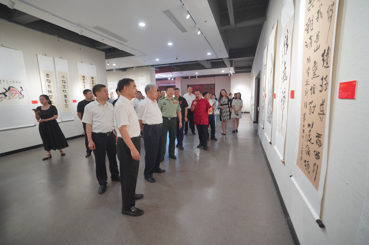 十三屆全國人大華僑委委員,省人大常委會(huì)原黨組副書記、副主任,省人大書畫院院長葉雙瑜,省文聯(lián)主席陸開錦,省軍區(qū)政治工作局郎軍,省退役軍人事務(wù)廳黨組書記、廳長、省雙擁辦主任羅慶春,省廣播影視集團(tuán)黨組書記、董事長曾祥輝,中國美術(shù)家協(xié)會(huì)副主席、省文聯(lián)專職副主席、省美協(xié)主席王來文,省愛國擁軍促進(jìn)會(huì)黨支部書記黃序和,省愛國擁軍促進(jìn)會(huì)會(huì)長辛志華,省人大常委會(huì)原委員、省人大書畫院副院長兼秘書長溫佳祿,省人大常委會(huì)教科文衛(wèi)工委原副巡視員、省人大書畫院副院長方晨,特邀作品嘉賓代表陳奮武、曾以寧等參加開幕式并觀展。