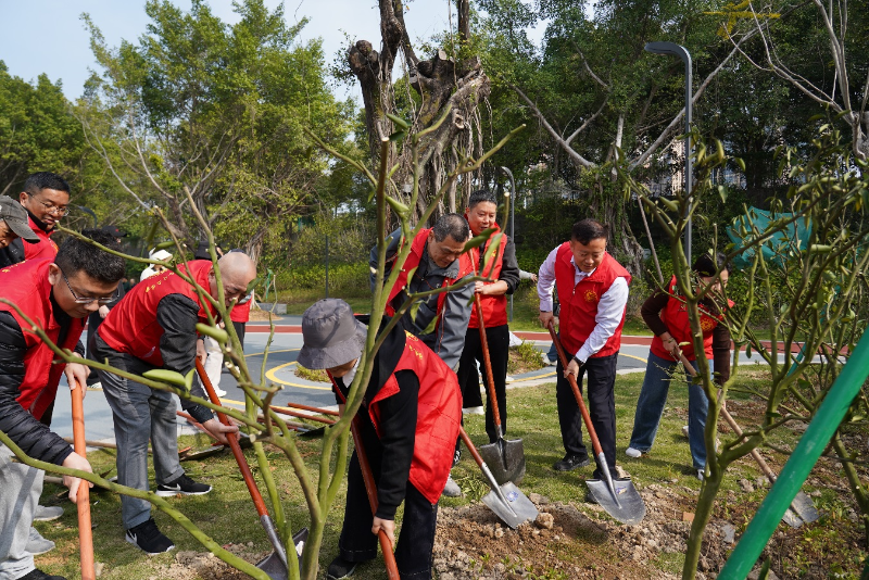 在福州國光公園,活動(dòng)現(xiàn)場呈現(xiàn)出一派熱火朝天的春日勞動(dòng)景象。志愿者們分工合作,揮鎬松土、扶苗填坑、澆水灌溉,順利種下32棵福桔樹,為閩江之畔增添了一抹新綠。