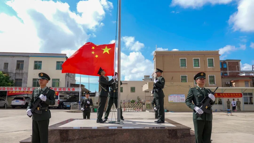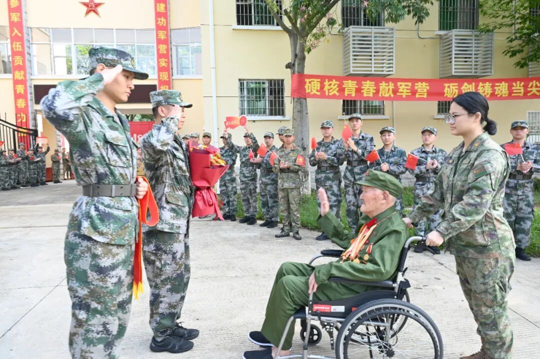 退役軍人蔡澤恩帶領(lǐng)全體同學(xué)面向國(guó)旗宣誓:“愿以吾輩之青春,捍衛(wèi)盛世之中華”,鏗鏘誓言激發(fā)濃濃愛國(guó)情。