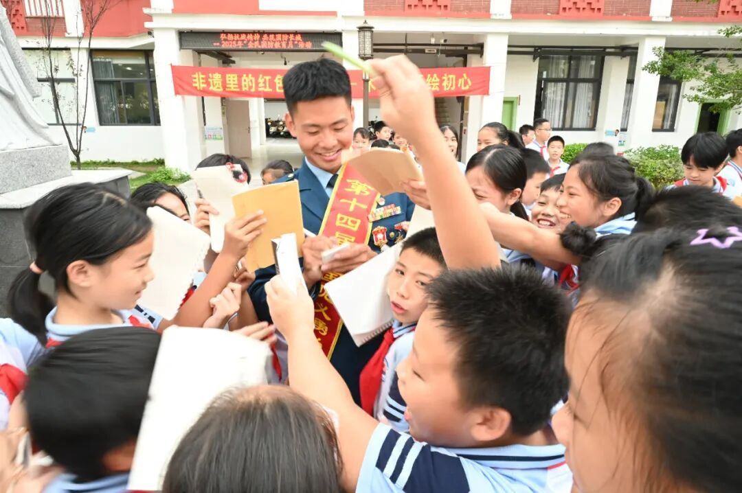 “顏叔叔,可以給我簽個(gè)名嗎?”“我也要合影!”……9月29日下午,漳州市巷口中心小學(xué)的校園里,一場(chǎng)別開生面的“追星”熱潮正在上演。同學(xué)們簇?fù)碇摹懊餍恰?,不是娛樂偶像,而是他們的學(xué)長(zhǎng)——第十四屆全國(guó)見義勇為模范、二等功臣退役軍人顏國(guó)慶。他受邀回到母校,參加“弘揚(yáng)抗戰(zhàn)精神 共筑國(guó)防長(zhǎng)城”全民國(guó)防教育月活動(dòng)。這一刻,校園不僅是教育的場(chǎng)所,更成為傳承紅色精神、點(diǎn)燃報(bào)國(guó)夢(mèng)想的生動(dòng)課堂。