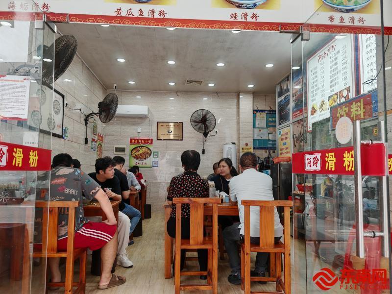 阿玲滑粉店內(nèi)(東南網(wǎng)福清站記者王倩雯 攝) 中午十一點半,阿玲滑粉店內(nèi)坐滿了人,服務(wù)員端著碗穿梭在餐桌間,偶爾還要回應(yīng)顧客“加份小吃”的要求。 “我們開了快10年了,都是老顧客多?!钡曛鲗O先生介紹,“每天早上起來準(zhǔn)備食材,滑粉都是手工做的,客人吃得放心,我們也踏實?!?/p>