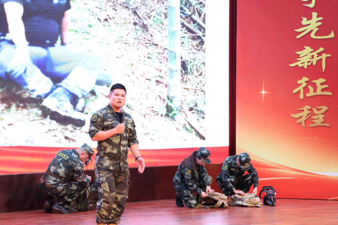宣講會上,五位來自不同崗位的代表依次登臺,深情講述了他們賡續(xù)傳統(tǒng)、擔(dān)當(dāng)使命的生動實踐。漳州軍分區(qū)政治工作處中校干事彭軍分享了軍地攜手幫扶、共建美好家園的生動實踐;三明市大田縣前坪鄉(xiāng)岱山跨村聯(lián)建黨總支書記、退役軍人林佳山講述了帶領(lǐng)村民發(fā)展特色產(chǎn)業(yè)、助力鄉(xiāng)村振興的奮斗歷程;龍巖市上杭縣古田軍號公益救援突擊隊隊長凌徵鵬同志講述了從軍人到公益救援組織發(fā)起人的轉(zhuǎn)變,他將過硬作風(fēng)融入社會治理新戰(zhàn)場,在危急關(guān)頭挺身而出,續(xù)寫著為民服務(wù)的奉獻(xiàn)篇章;福州市鼓樓區(qū)三坊七巷消防救援站副站長、退役軍人張?zhí)焖窒砹藦能娙说较绬T的不變堅守;廈門雙十中學(xué)語文老師、退役軍人劉萬磊分享了將部隊錘煉的意志品質(zhì)融入教育教學(xué)的實踐感悟,展現(xiàn)了在教育一線延續(xù)軍人本色、培育時代新人的責(zé)任擔(dān)當(dāng)。這些平實而深刻的講述,既展現(xiàn)了退役軍人“退役不褪色、轉(zhuǎn)崗不轉(zhuǎn)志”的忠誠本色,也譜寫了新時代“軍民團(tuán)結(jié)、雙向奔赴”的動人篇章。