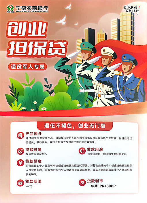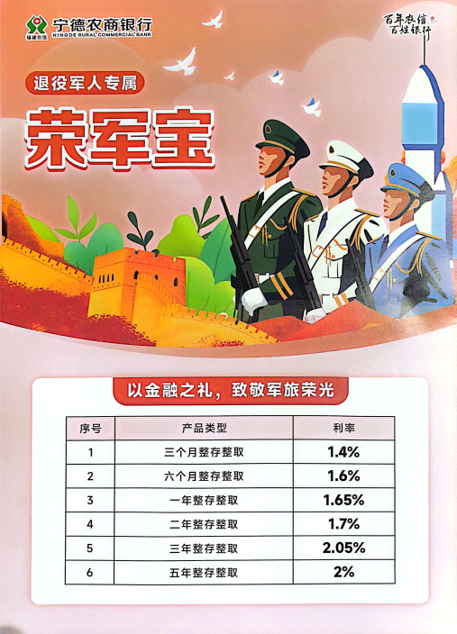 根據(jù)雙方合作協(xié)議,寧德農(nóng)村商業(yè)銀行將推出“擁軍貸”專屬服務(wù),開通綠色審批通道,在融資授信、利率費率、信用額度方面給予支持,向退役軍人設(shè)計專屬個人金融服務(wù)方案,提供退役軍人專屬存款產(chǎn)品“榮軍寶”;為退役軍人創(chuàng)辦企業(yè)提供“開戶-結(jié)算-融資-理財”全鏈條服務(wù),包括免費開戶、電子銀行服務(wù)費減免、資金結(jié)算優(yōu)惠,以及“福農(nóng)e付”收單手續(xù)費減免;為重點退役軍人企業(yè)提供財務(wù)顧問服務(wù),協(xié)助對接產(chǎn)業(yè)鏈資源。