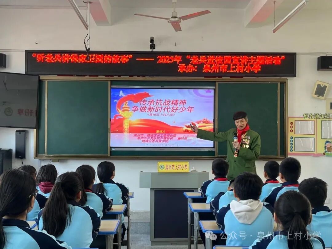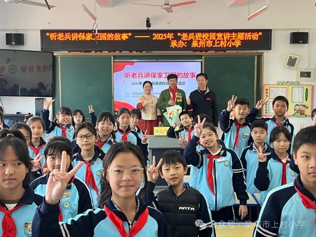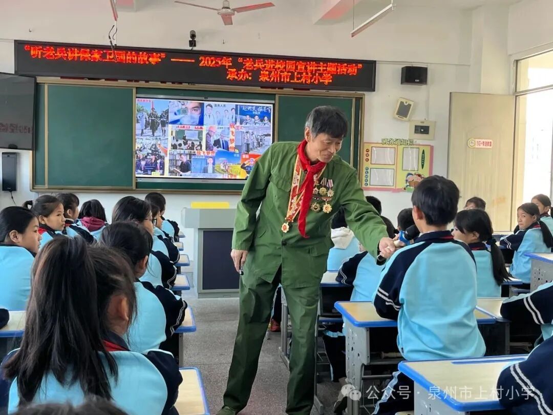 11月26日上午,一等戰(zhàn)功獲得者、“泉州市最美退役軍人”詹明德走進(jìn)泉州市上村小學(xué)開展主題宣講。此次活動(dòng)由共青團(tuán)鯉城區(qū)委員會(huì)、鯉城區(qū)教育局、鯉城區(qū)退役軍人事務(wù)局主辦,泉州市上村小學(xué)承辦。少先隊(duì)員們與輔導(dǎo)員懷著無(wú)比崇敬的心情歡聚一堂,共同聆聽(tīng)?wèi)?zhàn)斗英雄的傳奇故事,感受退役軍人的初心使命?,F(xiàn)場(chǎng)響起的陣陣熱烈掌聲,是大家對(duì)他最誠(chéng)摯的問(wèn)候與最崇高的敬意。 活動(dòng)現(xiàn)場(chǎng),輔導(dǎo)員帶領(lǐng)大家共同回顧了一等戰(zhàn)功獲得者、“泉州市最美退役軍人”詹明德那部書寫著忠誠(chéng)與擔(dān)當(dāng)?shù)膲邀惾松?。他始終堅(jiān)守軍人本色,恪盡職守、銳意進(jìn)取,先后斬獲省級(jí)勞模、市精神文明建設(shè)先進(jìn)工作者、市見(jiàn)義勇為先進(jìn)個(gè)人、市五一勞動(dòng)獎(jiǎng)?wù)隆^(qū)優(yōu)秀共產(chǎn)黨員等省、市、區(qū)各級(jí)榮譽(yù)近三十項(xiàng),用實(shí)際行動(dòng)踐行了“為人民服務(wù)”的錚錚誓言。