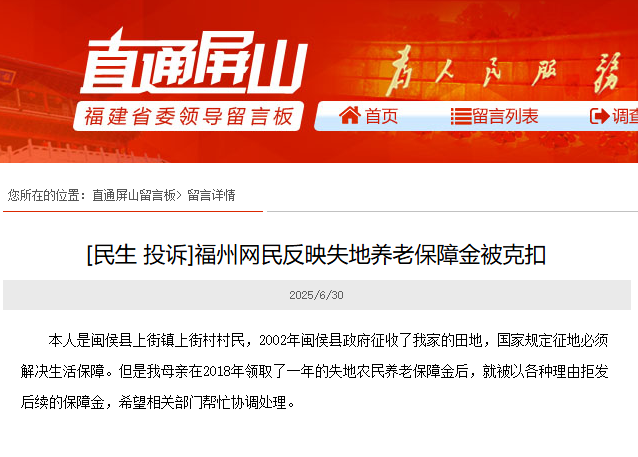 福州閩侯林先生反映,當?shù)夭簧俅迕裨谡鞯睾笞孕袇⒓恿遂`活就業(yè)人員養(yǎng)老保險,到退休年齡時,當?shù)貐s以此為由不予發(fā)放被征地農(nóng)民養(yǎng)老保障金。福州多地存在類似情況。